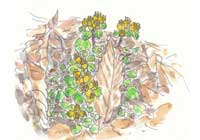 ナガバノスミレサイシン、ヤマアイ、タチネコノメソウ、ハナノキ、ジロボウエンゴサク、キブシ、アブラチャン、クロモジ、シロモジ